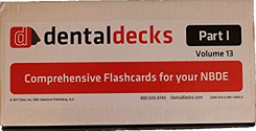 - 2017-2018 Dental Decks Part I Volume 13 provides you with a fast, convenient, and proven way to learn. This edition features over 1,300 individual flash cards formatted with a question on the front and a detailed, comprehensive answer and topic review on the back. You'll receive additional cards with bonus learning content, and a 100-question test booklet.